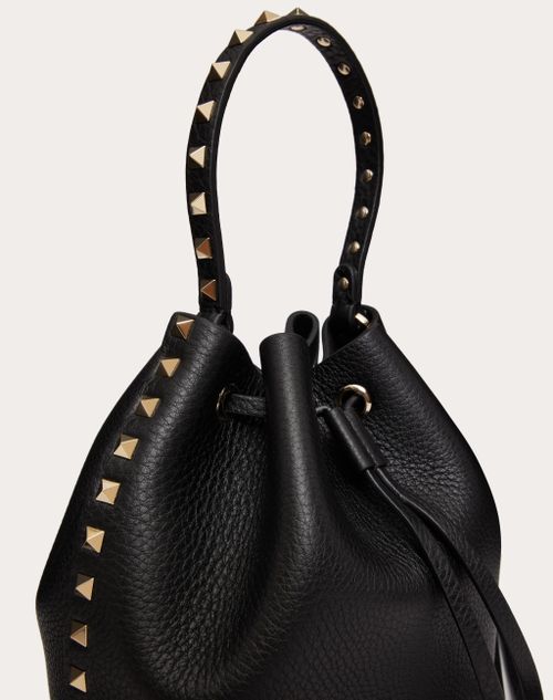 Rockstud Grainy Calfskin Bucket Bag for Woman in Black | Valentino US