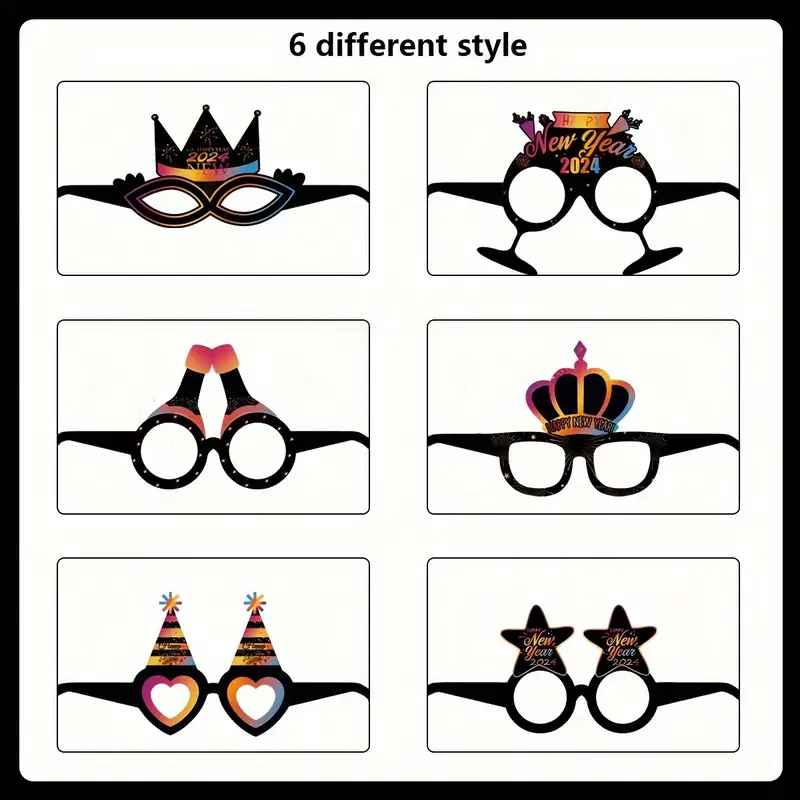 6 Stück, 2024 Brillengestell, Neujahrsparty Dekoration, Dekorative