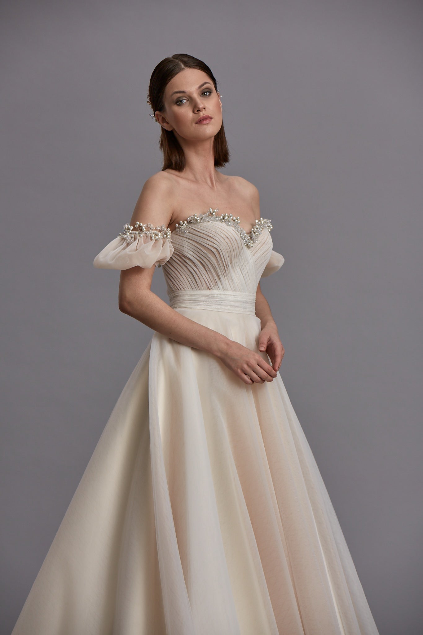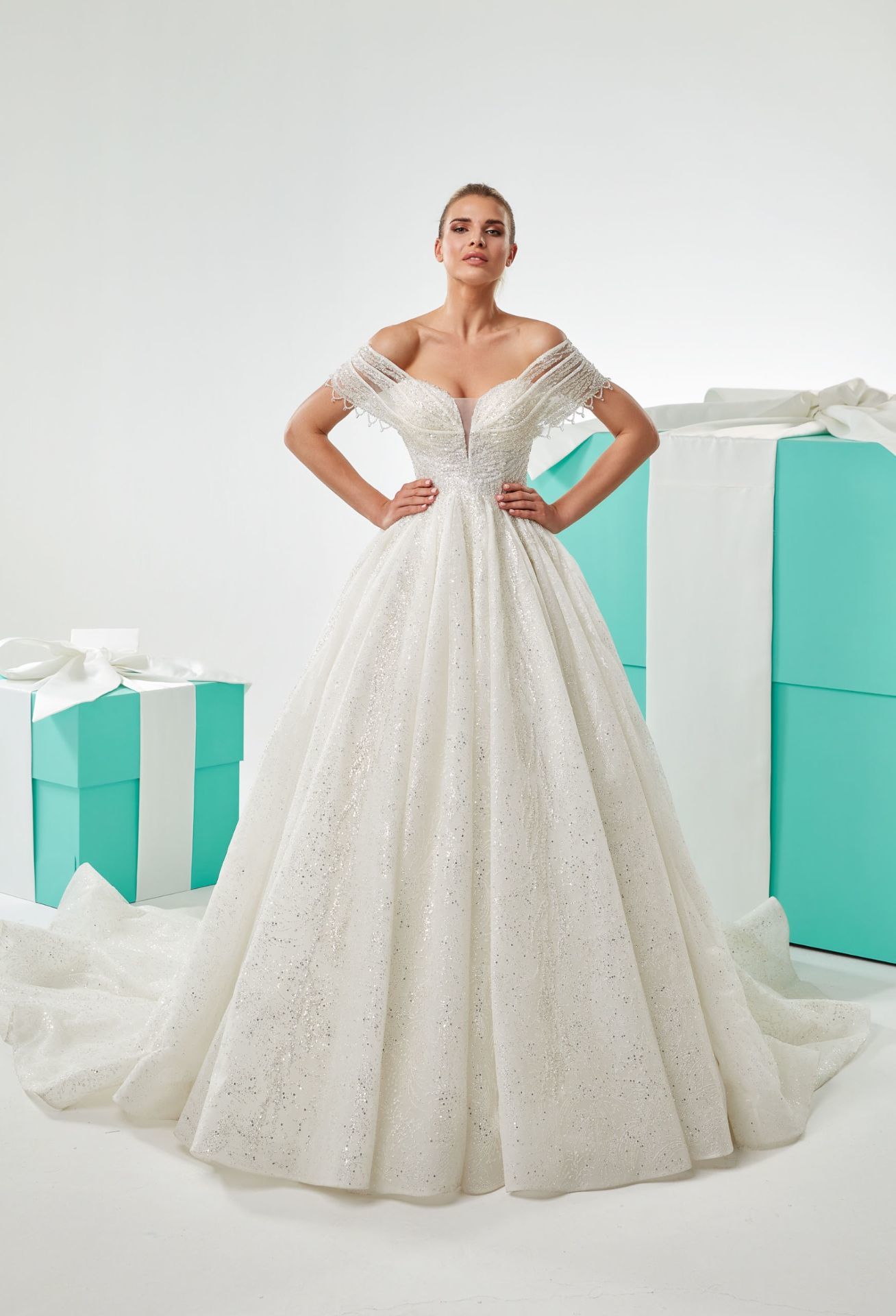 Kol Detaylı, Kayık Yaka, Balo Tipi Gelinlik Modeli