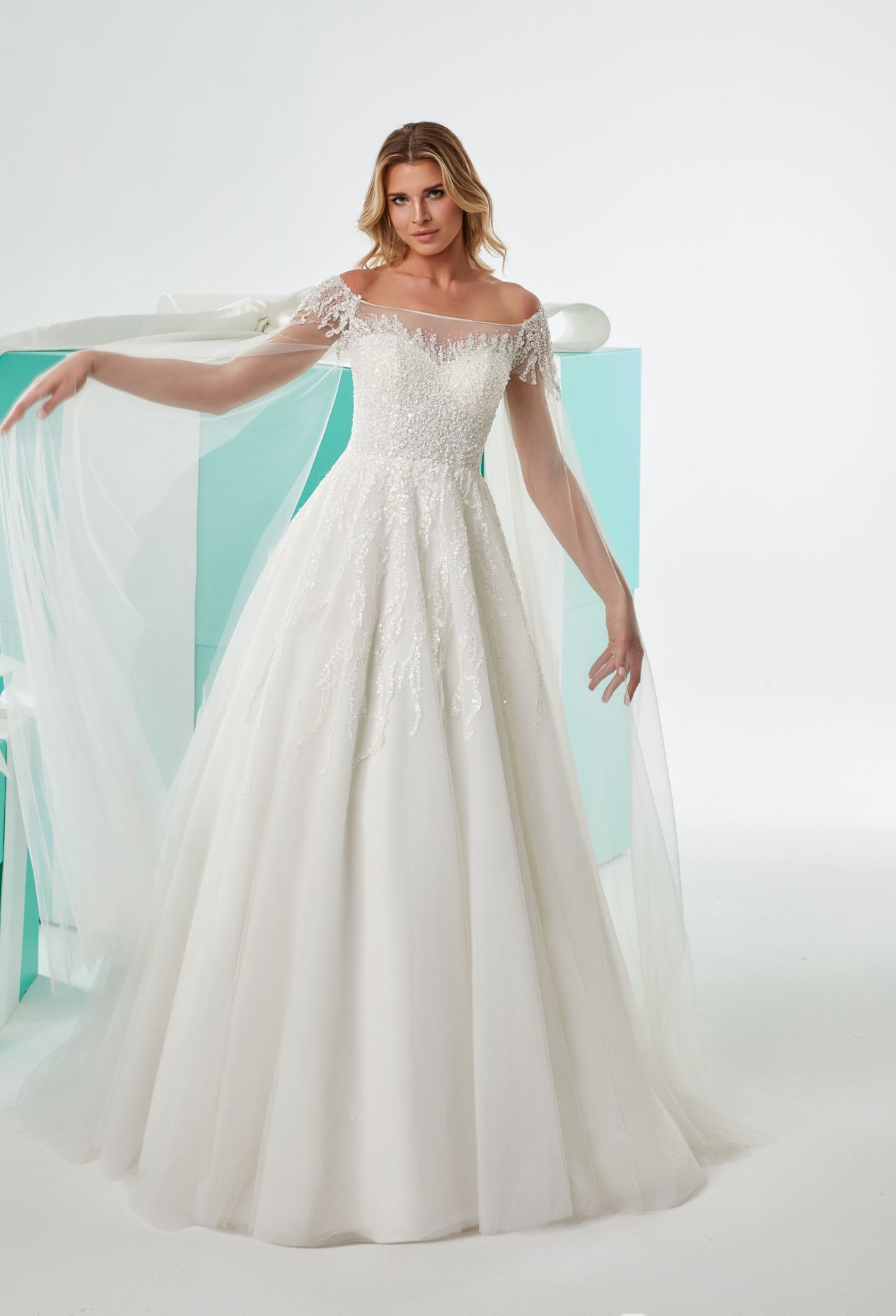 Pelerinli, İşlemeli Helen Gelinlik Modeli