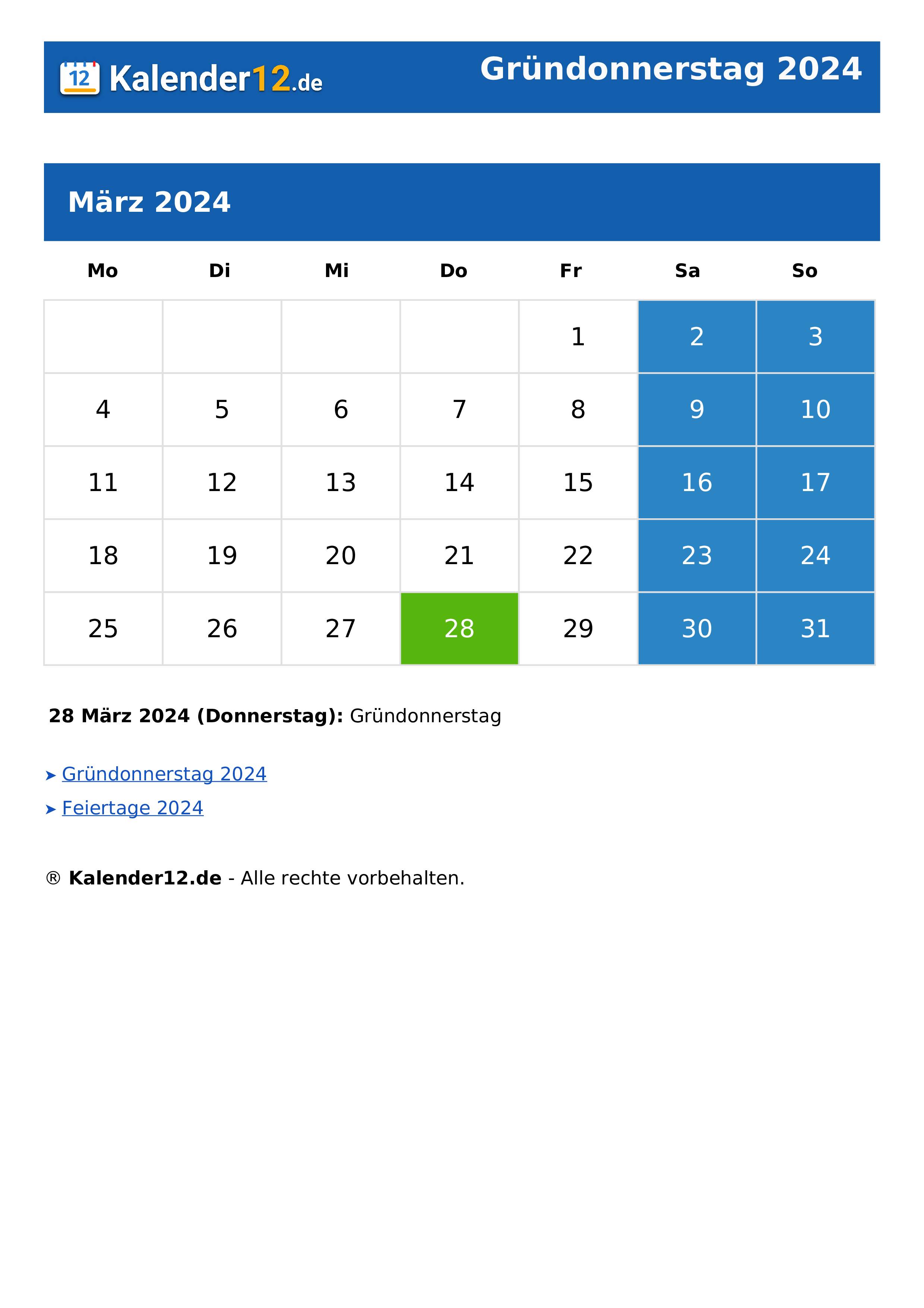 Wann ist Gründonnerstag 2024? ⬅️ — Kalender12.de