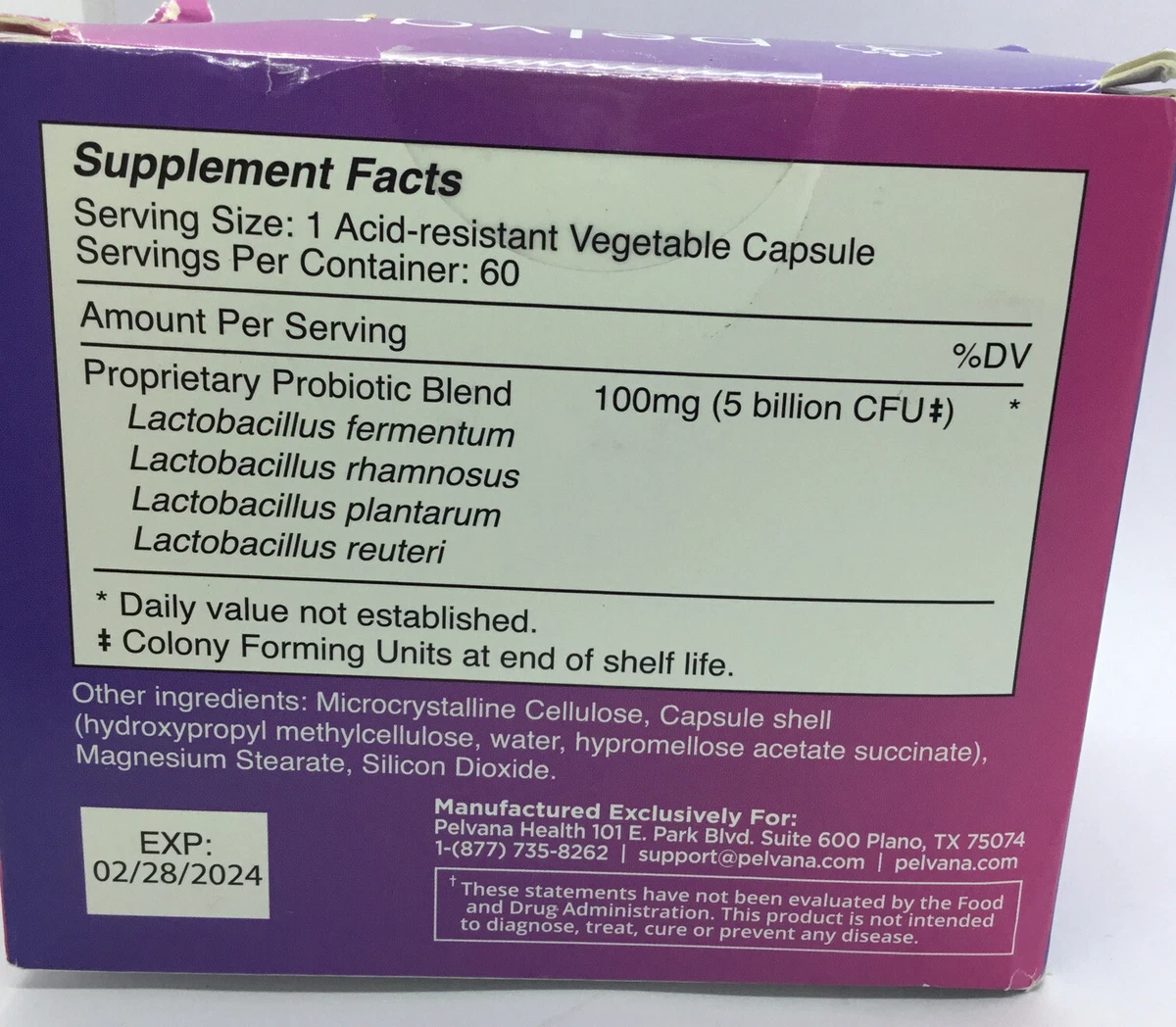 Pelvana Vaginal Probiotics 60 Servings + 20 pH Test Strips 02/2024