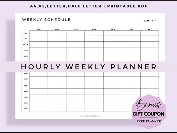 Hourly Weekly Schedule Weekly Planner Template PDF Weekly Etsy
